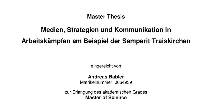 ORF-Sternchen Martin Thür lieferte seine Masterarbeit am 28.1.2009 bei der Donau-Uni ab, Andreas Babler nur neun Tage zuvor am 19.1.2009.