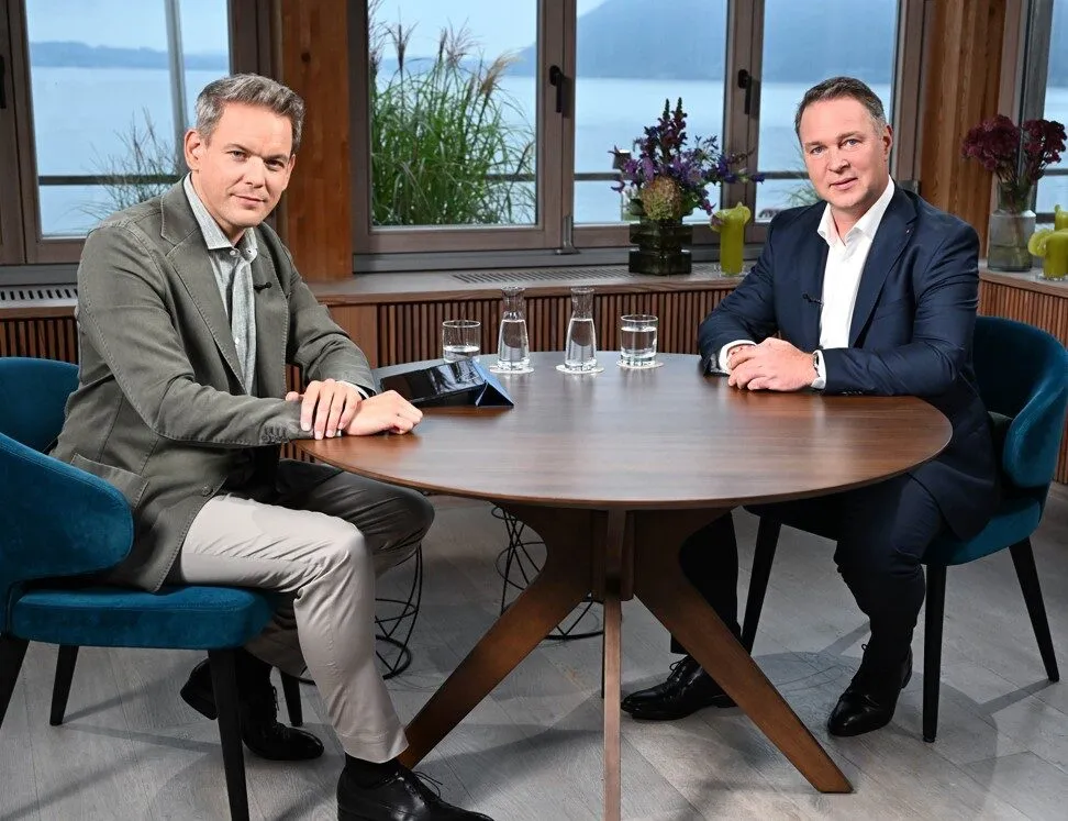 Im Sinne der sonst so vom ORF betonten Transparenz und Überparteilichkeit hätte das Publikum sehr wohl darüber informiert werden müssen, dass ORF-Interviewer Martin Thür und SPÖ-Chef Andreas Babler Studienkollegen auf der Donau-Uni Krems waren – bei einem Lehrgang mit nur 25 Teilnehmern. Hier die beiden Studienkollegen beim Sommergespräch 2024.