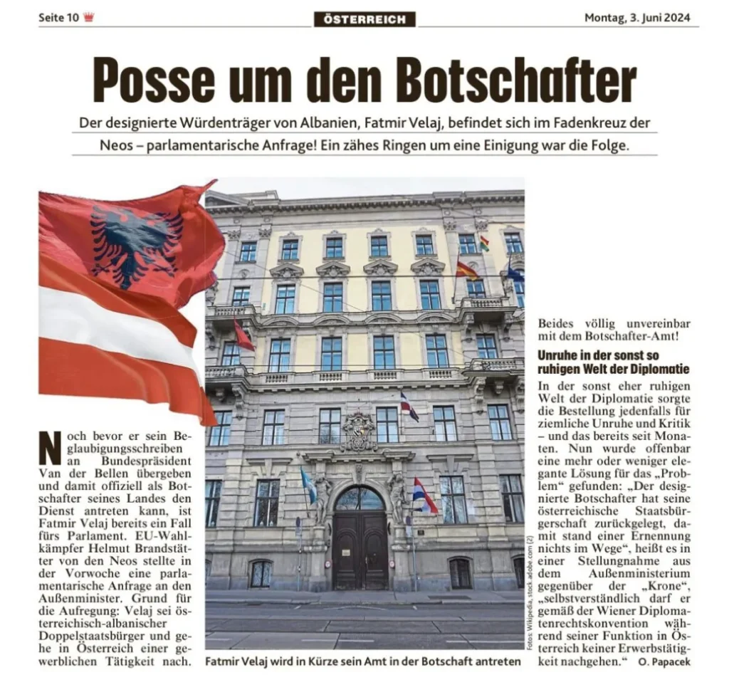 Zusätzlich gibt es laut mehreren Quellen den Vorwurf, Velaj habe seine kriminell verurteilte Schwägerin in der Wiener Botschaft versteckt.